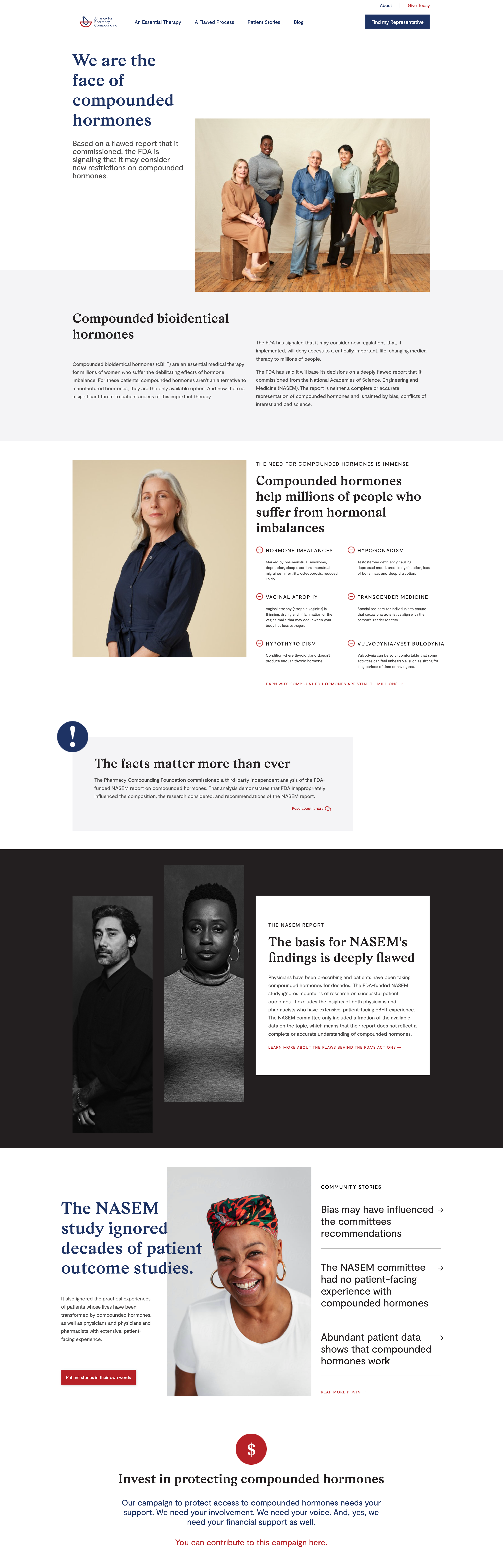 APC is an advocacy organization for compounding pharmacies. After FDA threatened to remove compounded hormones from the market, our original campaign for APC focused on raising awareness of the vital role that compounded hormones play in the health of millions of patients who have no other options. Later, we expanded the campaign to raise awareness of compounding as an industry.